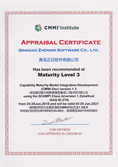 正日軟件是國家認(rèn)定的高新技術(shù)企業(yè)和雙軟企業(yè),產(chǎn)品服務(wù)嚴(yán)格以ISO9001質(zhì)量體系認(rèn)證標(biāo)準(zhǔn)執(zhí)行。此次CMMI3證書的成功取得,也進(jìn)一步證明正日軟件在軟件設(shè)計(jì)、開發(fā)、項(xiàng)目管理及為客戶提供高質(zhì)量產(chǎn)品等方面付出了巨大精力投入,同時也獲得了客戶、行業(yè)及權(quán)威機(jī)構(gòu)的認(rèn)可。