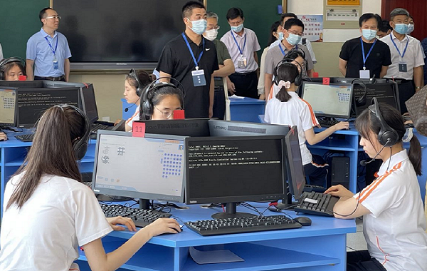 現(xiàn)場觀摩過程中專門設(shè)置了青島市初中學業(yè)水平考試藝術(shù)學科考試系統(tǒng)操作流程的展示環(huán)節(jié),領(lǐng)導和嘉賓們依次來到學校的4個微機室,了解青島市專項測試上機考試流程、題型、主要內(nèi)容等,對青島市美育全過程的扎實規(guī)范以及豐碩育人成果予以贊揚。