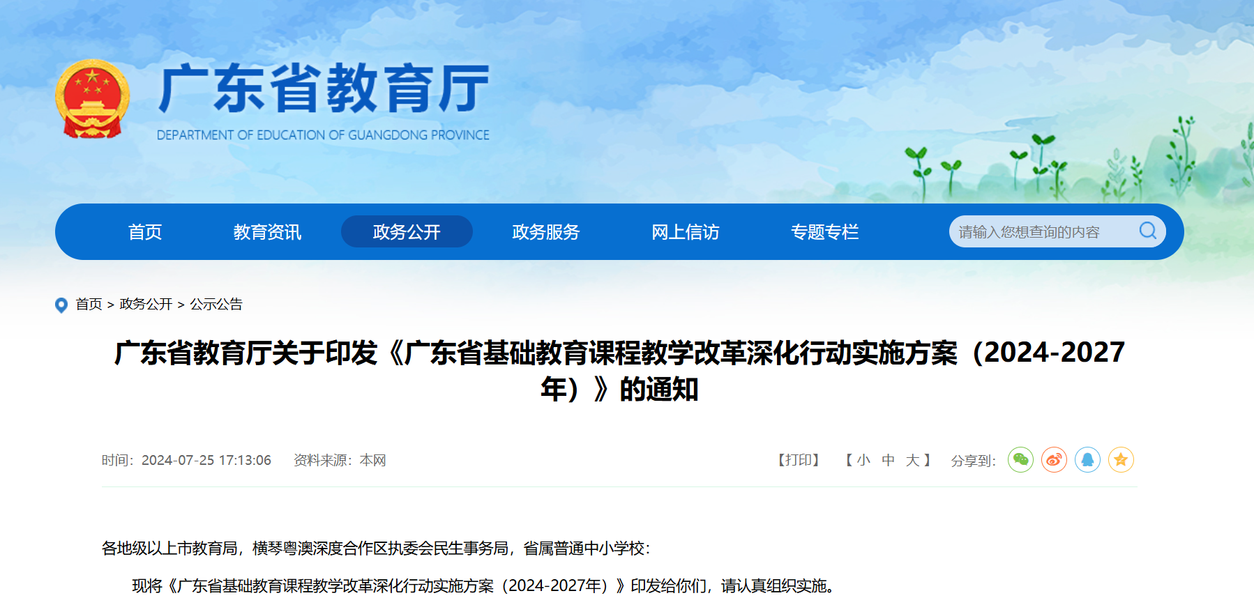 現(xiàn)將《廣東省基礎(chǔ)教育課程教學(xué)改革深化行動(dòng)實(shí)施方案(2024-2027年)》印發(fā)給你們,請(qǐng)認(rèn)真組織實(shí)施。