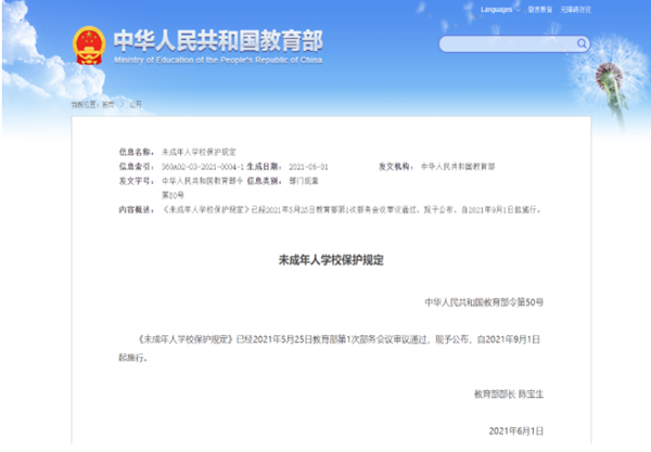 為規(guī)范學(xué)校教育教學(xué)行為,促進(jìn)學(xué)生身心健康發(fā)展,教育部6月1日頒布了《未成年人學(xué)校保護(hù)規(guī)定》,針對(duì)學(xué)生欺凌、校園性侵害等社會(huì)關(guān)注的熱點(diǎn)問(wèn)題建立完善了專門(mén)制度,規(guī)定學(xué)校的具體職責(zé)以及工作要求。其中有很多新舉措,如:提出學(xué)校不得對(duì)學(xué)生在課間及其他非教學(xué)時(shí)間的正常交流、游戲、出教室活動(dòng)等言行自由設(shè)置不必要的約束。禁止學(xué)校、教師公開(kāi)學(xué)生的考試成績(jī)和排名等等?!兑?guī)定》還全面規(guī)定了學(xué)校應(yīng)當(dāng)建立實(shí)施的管理制度(其中包含“五項(xiàng)管理”),首次劃清了學(xué)校管理的制度框架與要求,明確了行為紅線,體現(xiàn)堅(jiān)持眼睛向內(nèi)抓治理的堅(jiān)定決心。