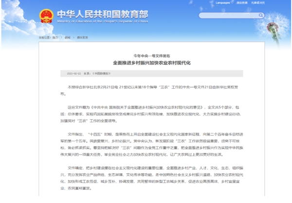 2月21日,“十四五”時(shí)期首個(gè)中央一號(hào)文件由新華社受權(quán)發(fā)布。文件題為《中共中央 國(guó)務(wù)院關(guān)于全面推進(jìn)鄉(xiāng)村振興加快農(nóng)業(yè)農(nóng)村現(xiàn)代化的意見(jiàn)》,這份指導(dǎo)今年乃至“十四五”時(shí)期“三農(nóng)”工作的重要文件中多個(gè)要點(diǎn)提及教育助力鄉(xiāng)村振興。包括:支持高校為鄉(xiāng)村振興提供智力服務(wù)。提高農(nóng)村教育質(zhì)量,多渠道增加農(nóng)村普惠性學(xué)前教育資源供給,繼續(xù)改善鄉(xiāng)鎮(zhèn)寄宿制學(xué)校辦學(xué)條件,保留并辦好必要的鄉(xiāng)村小規(guī)模學(xué)校,在縣城和中心鎮(zhèn)新建改擴(kuò)建一批高中和中等職業(yè)學(xué)校。完善農(nóng)村特殊教育保障機(jī)制。推進(jìn)縣域內(nèi)義務(wù)教育學(xué)校校長(zhǎng)教師交流輪崗,支持建設(shè)城鄉(xiāng)學(xué)校共同體。面向農(nóng)民就業(yè)需求,發(fā)展職業(yè)技術(shù)教育與技能培訓(xùn),建設(shè)一批產(chǎn)教融合基地。開(kāi)展耕讀教育。加快發(fā)展面向鄉(xiāng)村的網(wǎng)絡(luò)教育,加大涉農(nóng)高校、涉農(nóng)職業(yè)院校、涉農(nóng)學(xué)科專業(yè)建設(shè)力度等等。