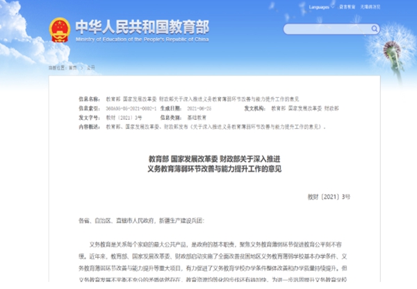 7月2日,教育部等三部門(mén)印發(fā)了《關(guān)于深入推進(jìn)義務(wù)教育薄弱環(huán)節(jié)改善與能力提升工作的意見(jiàn)》,強(qiáng)調(diào)要突出加強(qiáng)農(nóng)村義務(wù)教育薄弱環(huán)節(jié)這個(gè)事關(guān)全局的重點(diǎn)?!兑庖?jiàn)》還布置了3項(xiàng)重點(diǎn)任務(wù),要求持續(xù)改善農(nóng)村基本辦學(xué)條件,改善學(xué)校寄宿條件,重點(diǎn)滿足偏遠(yuǎn)地區(qū)學(xué)生和留守兒童的寄宿需求,根據(jù)需要建設(shè)心理咨詢室、圖書(shū)室等功能教室,支持鄉(xiāng)村學(xué)校因地制宜開(kāi)好音體美等課程,保障教育教學(xué)需要。在提升學(xué)校辦學(xué)能力方面,要求各地要改善網(wǎng)絡(luò)設(shè)施,推動(dòng)信息技術(shù)與教育教學(xué)深度融合,提升信息技術(shù)應(yīng)用能力;支持學(xué)校網(wǎng)絡(luò)設(shè)施設(shè)備以及專遞課堂、名師課堂和名校網(wǎng)絡(luò)課堂建設(shè),更加注重支持提高農(nóng)村義務(wù)教育教師教學(xué)水平等等,體現(xiàn)了對(duì)農(nóng)村學(xué)校教育質(zhì)量提升的高度重視。