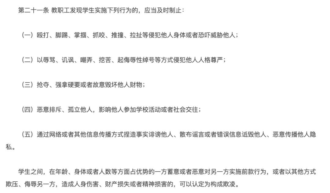 此外,今年6月1日,新修訂的《未成年人保護(hù)法》正式施行。《未成年人保護(hù)法》附則中對校園欺凌做了定義,叫“學(xué)生欺凌”。