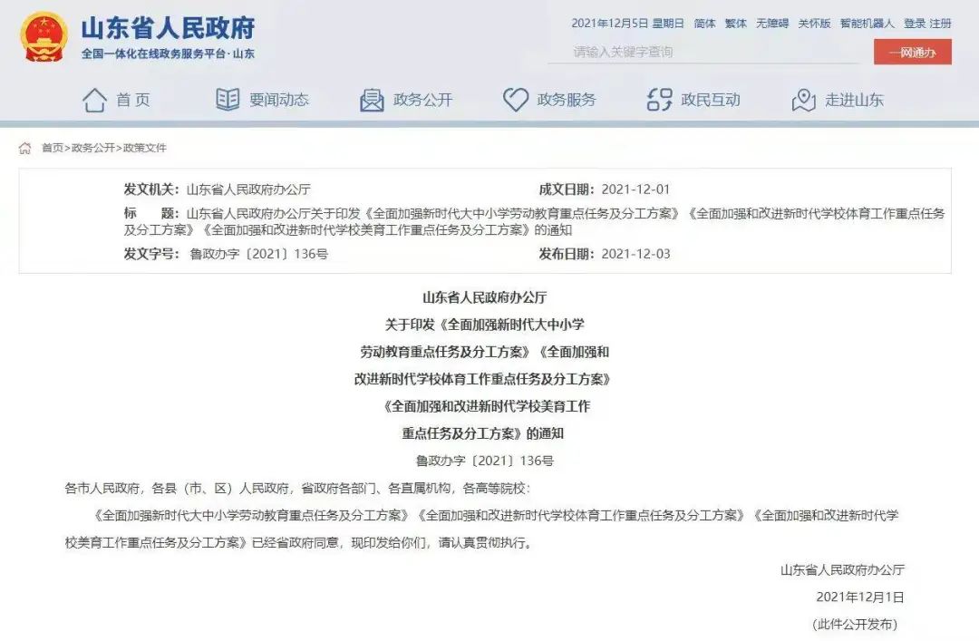 《全面加強(qiáng)新時代大中小學(xué)勞動教育重點任務(wù)及分工方案》《全面加強(qiáng)和改進(jìn)新時代學(xué)校體育工作重點任務(wù)及分工方案》《全面加強(qiáng)和改進(jìn)新時代學(xué)校美育工作重點任務(wù)及分工方案》已經(jīng)省政府同意,現(xiàn)印發(fā)給你們,請認(rèn)真貫徹執(zhí)行。