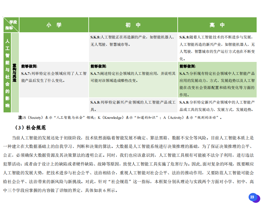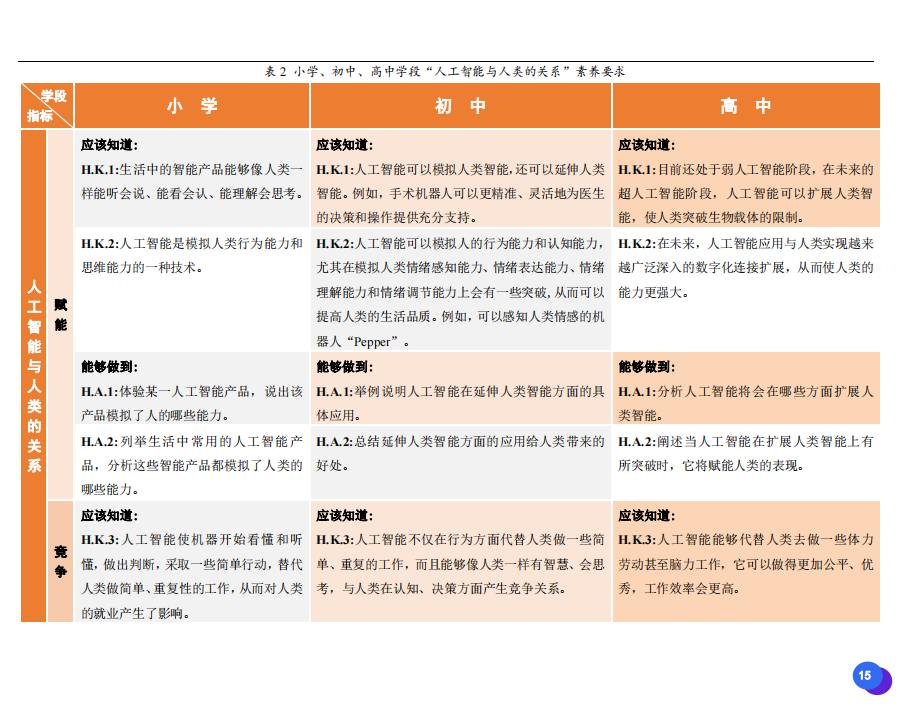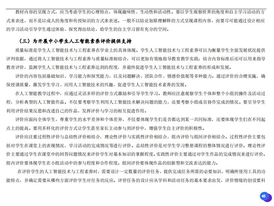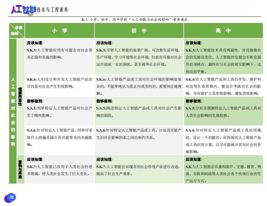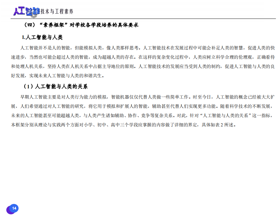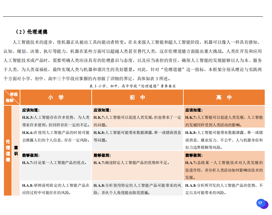 此次發(fā)布的《素養(yǎng)框架》包含人工智能與人類、人工智能與社會、人工智能與技術、人工智能系統(tǒng)設計與開發(fā)四個領域,可為中小學普及人工智能教育的標準制定、教材編寫、課程開設、素養(yǎng)評價提供重要參考,將推動人工智能教育從知識教育向素養(yǎng)教育的轉變?!端仞B(yǎng)框架》發(fā)布后,將不斷吸收有關意見和建議,逐步完善和更新。