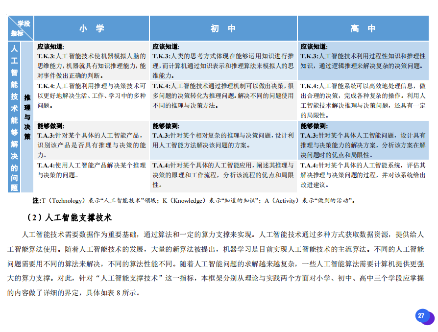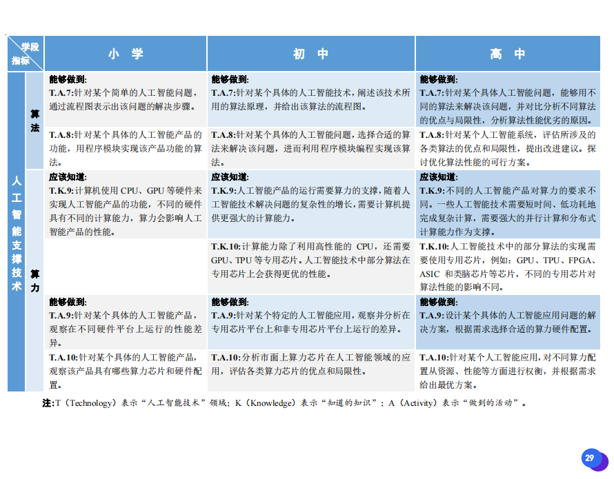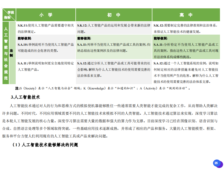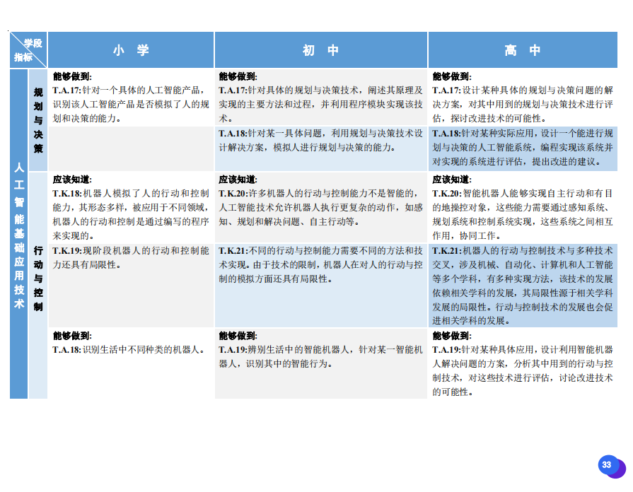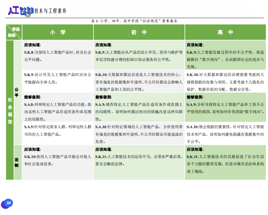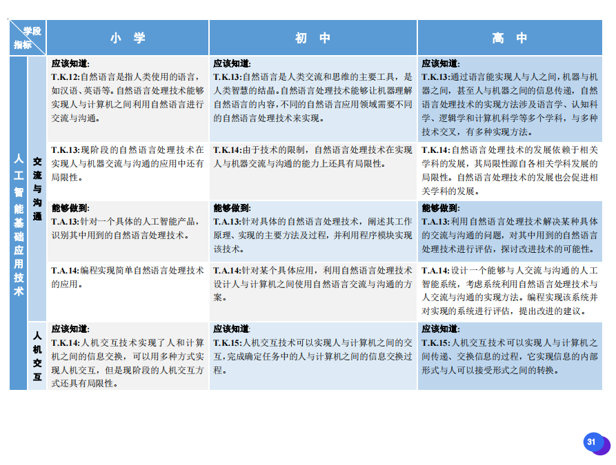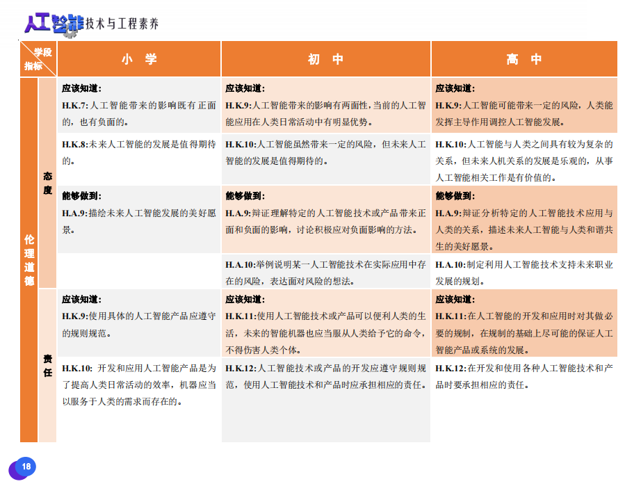 此次發(fā)布的《素養(yǎng)框架》包含人工智能與人類、人工智能與社會、人工智能與技術、人工智能系統(tǒng)設計與開發(fā)四個領域,可為中小學普及人工智能教育的標準制定、教材編寫、課程開設、素養(yǎng)評價提供重要參考,將推動人工智能教育從知識教育向素養(yǎng)教育的轉變?!端仞B(yǎng)框架》發(fā)布后,將不斷吸收有關意見和建議,逐步完善和更新。