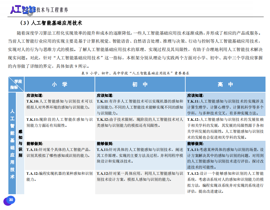 國務院《新一代人工智能發(fā)展規(guī)劃》發(fā)布以來,我國中小學人工智能教育開始進入快速發(fā)展軌道。據統(tǒng)計,目前已有上千所中小學開設人工智能課程。為了保證人工智能教育高質量發(fā)展,中央電化教育館組織高校相關領域教授、一線教研專家及產業(yè)界專家等共同研究制定了《中小學人工智能技術與工程素養(yǎng)框架》,并于11月30日正式發(fā)布。具體情況快跟著信息技術考試的小編看一下吧~