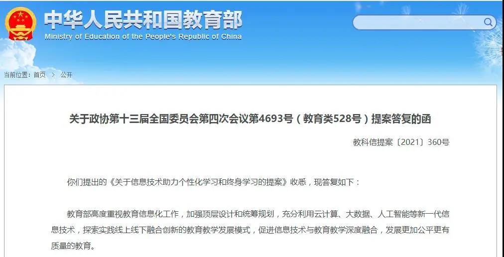你們提出的《關(guān)于信息技術(shù)助力個(gè)性化學(xué)習(xí)和終身學(xué)習(xí)的提案》收悉,現(xiàn)答復(fù)如下: