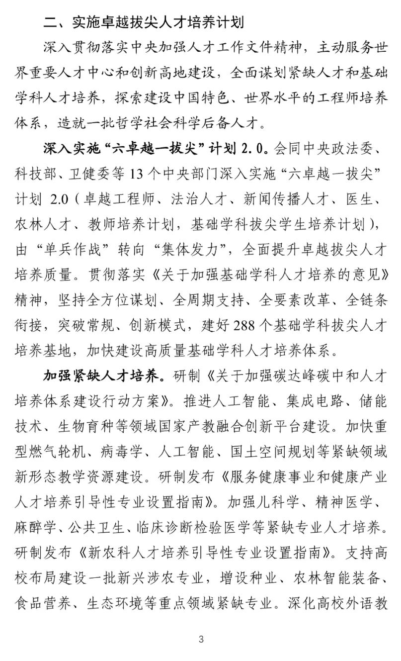 推進(jìn)人工智能、集成電路、儲(chǔ)能技術(shù)、生物育種等領(lǐng)域國(guó)家產(chǎn)教融合創(chuàng)新平臺(tái)建設(shè)。加快重型燃?xì)廨啓C(jī)、病毒學(xué)、人工智能、國(guó)土空間規(guī)劃等緊缺領(lǐng)域新形態(tài)教學(xué)資源建設(shè)。