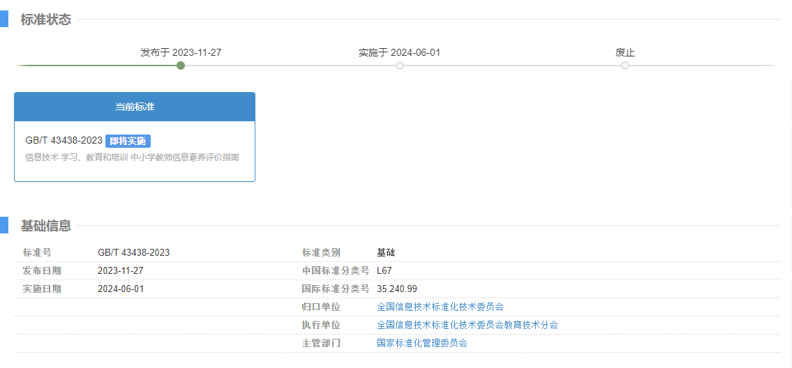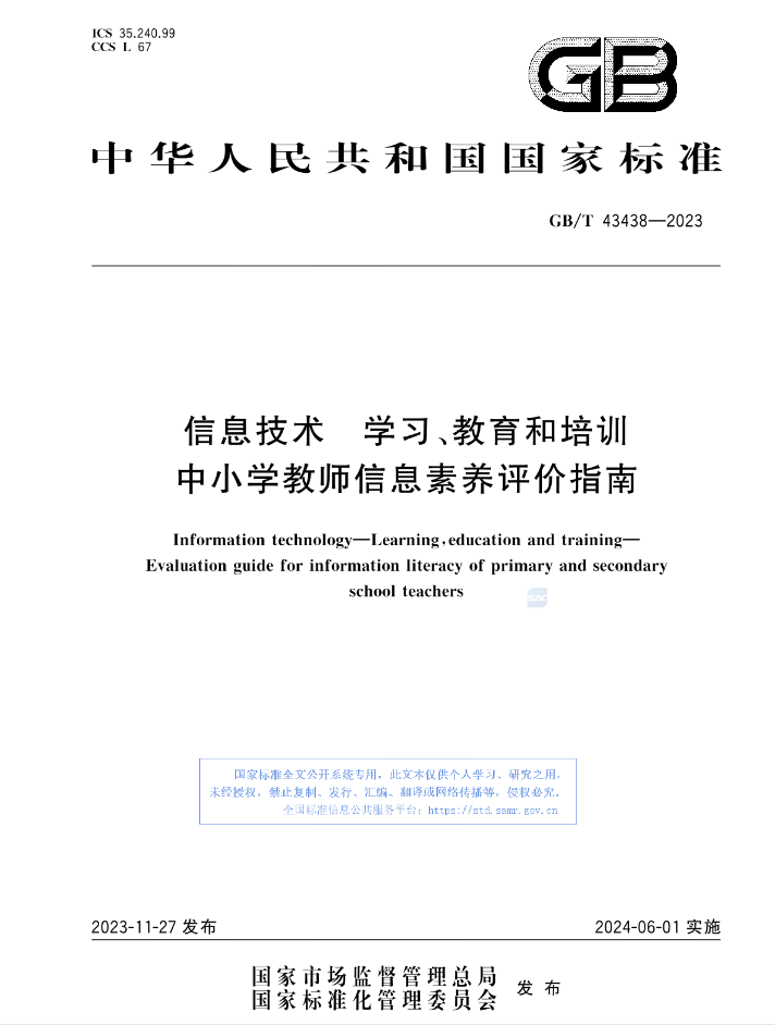 《GB/T 43438-2023信息技術(shù) 學(xué)習(xí)、教育和培訓(xùn) 中小學(xué)教師信息素養(yǎng)評(píng)價(jià)指南》