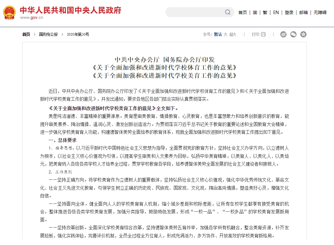 自2014年起,一系列關(guān)于藝術(shù)教育的政策出臺,指導(dǎo)各級教育主管單位、學(xué)校藝術(shù)教育工作的開展,培養(yǎng)學(xué)生藝術(shù)修養(yǎng)和審美情趣,實現(xiàn)以美育人、以美化人、以美潤心、以美培元,促進學(xué)生全面發(fā)展。