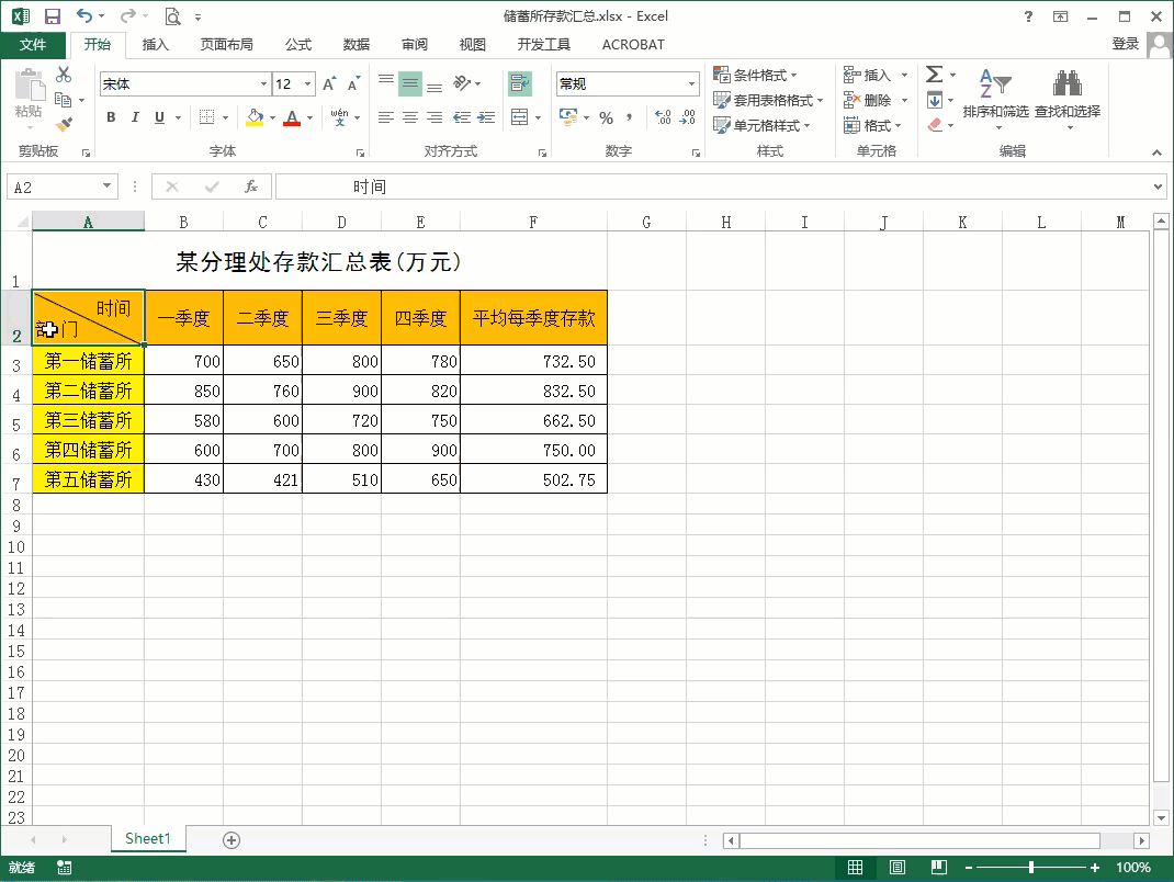 選中單元格區(qū)域A2:F2后,在開始選項卡中的字體功能區(qū)中,將填充顏色設置為橙色。選中單元格區(qū)域A3:A7后,將填充顏色設置為黃色。
