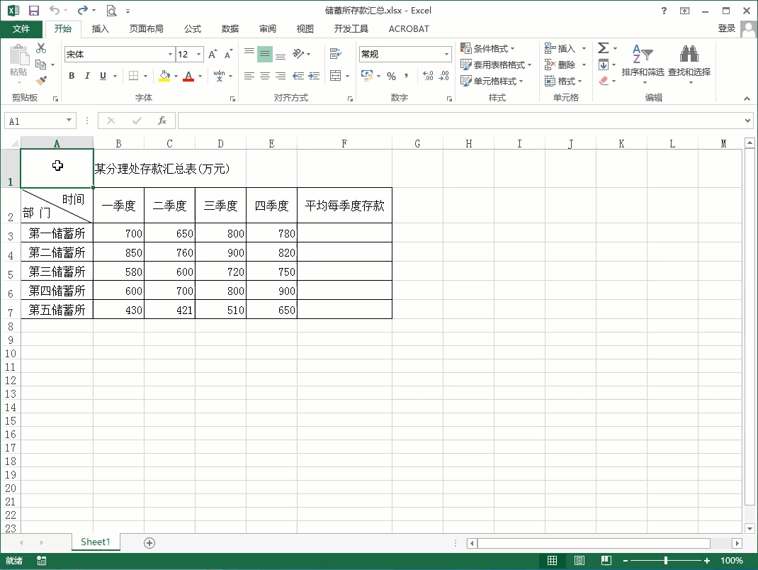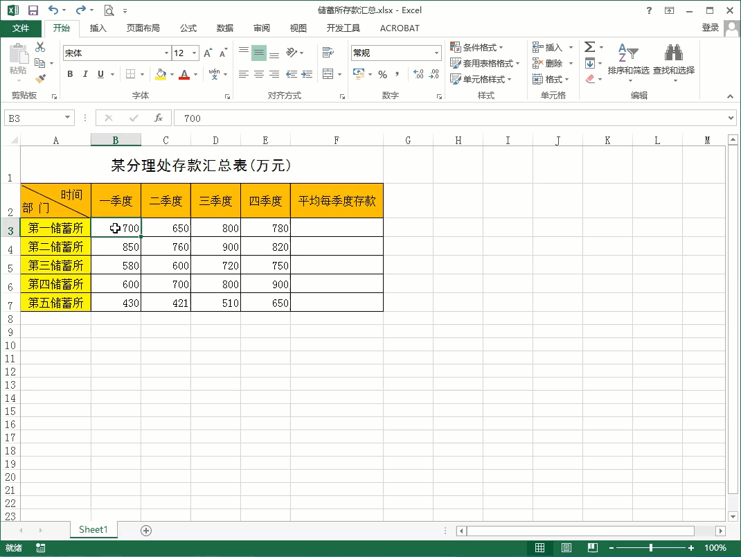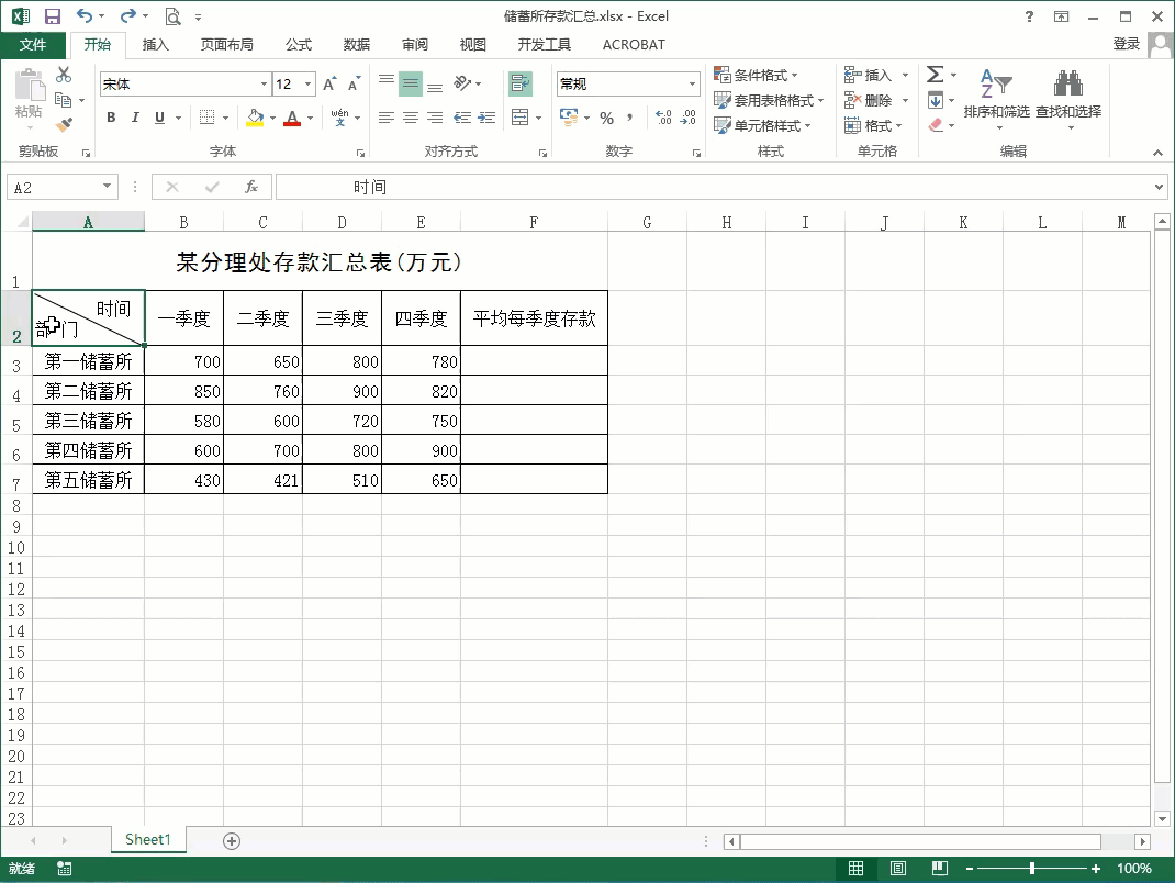 問題3的具體操作:用函數(shù)計算5個儲蓄所的“平均每季存款”填入相應的單元格中,將結果設為數(shù)值型, 保留2位小數(shù)。