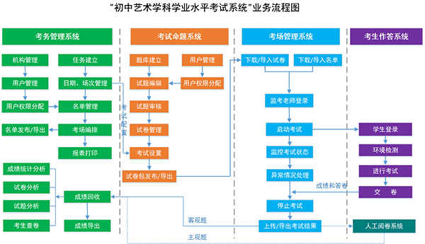 其次,初中藝術(shù)科目考試系統(tǒng)中考務(wù)管理系統(tǒng)的建立,可實(shí)現(xiàn)考試數(shù)據(jù)的存儲、自動下載、網(wǎng)絡(luò)化巡考、監(jiān)控和考試結(jié)果自動上報(bào)等功能,助力教育主管單位實(shí)現(xiàn)“以考促教,以考促學(xué),以考促建”目標(biāo)。