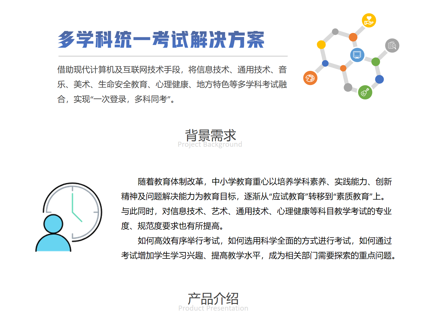 正日多學(xué)科統(tǒng)一考試系統(tǒng)采用多層架構(gòu)搭建,適用于各級部門組織的規(guī)?;荚?。通過系統(tǒng)內(nèi)部模塊化機制,實現(xiàn)“一套系統(tǒng),分科計分;一次登錄,多科同考”的多考合一考試模式。此外,系統(tǒng)具備數(shù)據(jù)集成交付能力,可接入英語口語、體育等學(xué)科外部成績數(shù)據(jù),多維度展現(xiàn)學(xué)生發(fā)展數(shù)據(jù), 助力提高考試的效率與科學(xué)性。