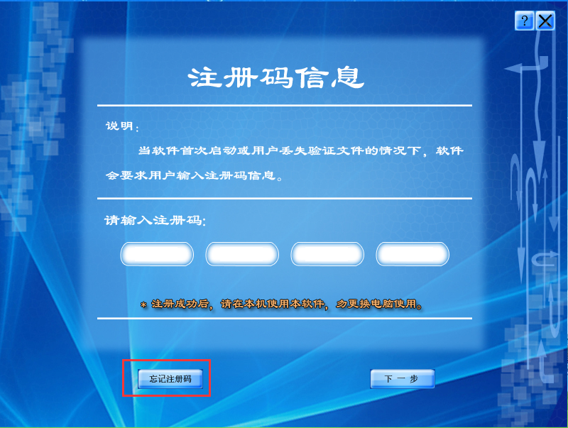 ①軟件安裝好之后,雙擊打開學考評,在“注冊碼信息”界面點擊“忘記注冊碼”